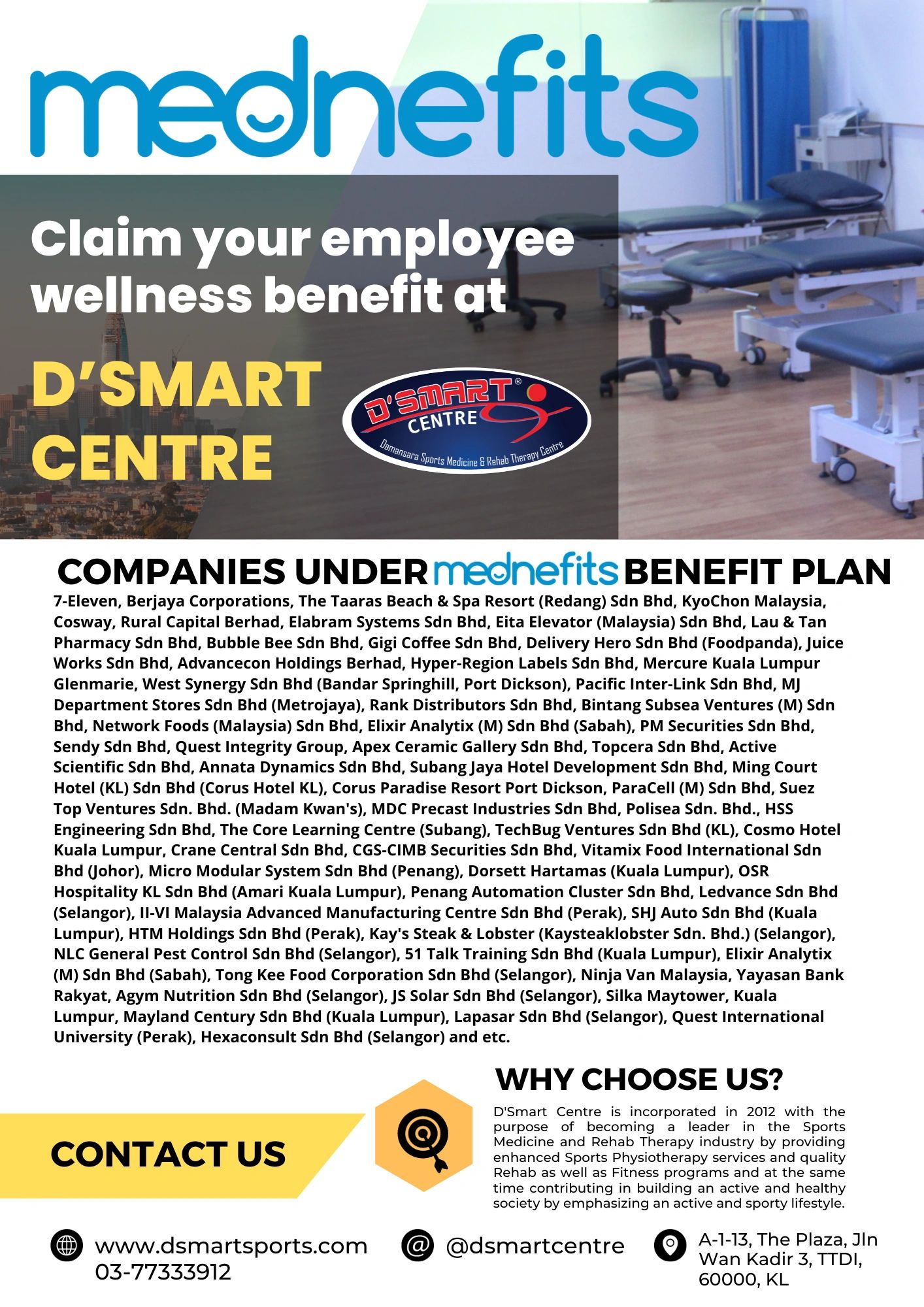 D'Smart Centre was incorporated in 2012 to become a leader in the Sports Medicine and Rehabilitation Therapy industry by providing enhanced Sports Physiotherapy services and quality Rehabilitation, as well as Fitness programs. At the same time, it contributes to building an active and healthy society by emphasising an active and sporty lifestyle. Under one roof, you will find three floors, comprising a full-fledged Physiotherapy department, a multipurpose exercise area and a fitness unit.
